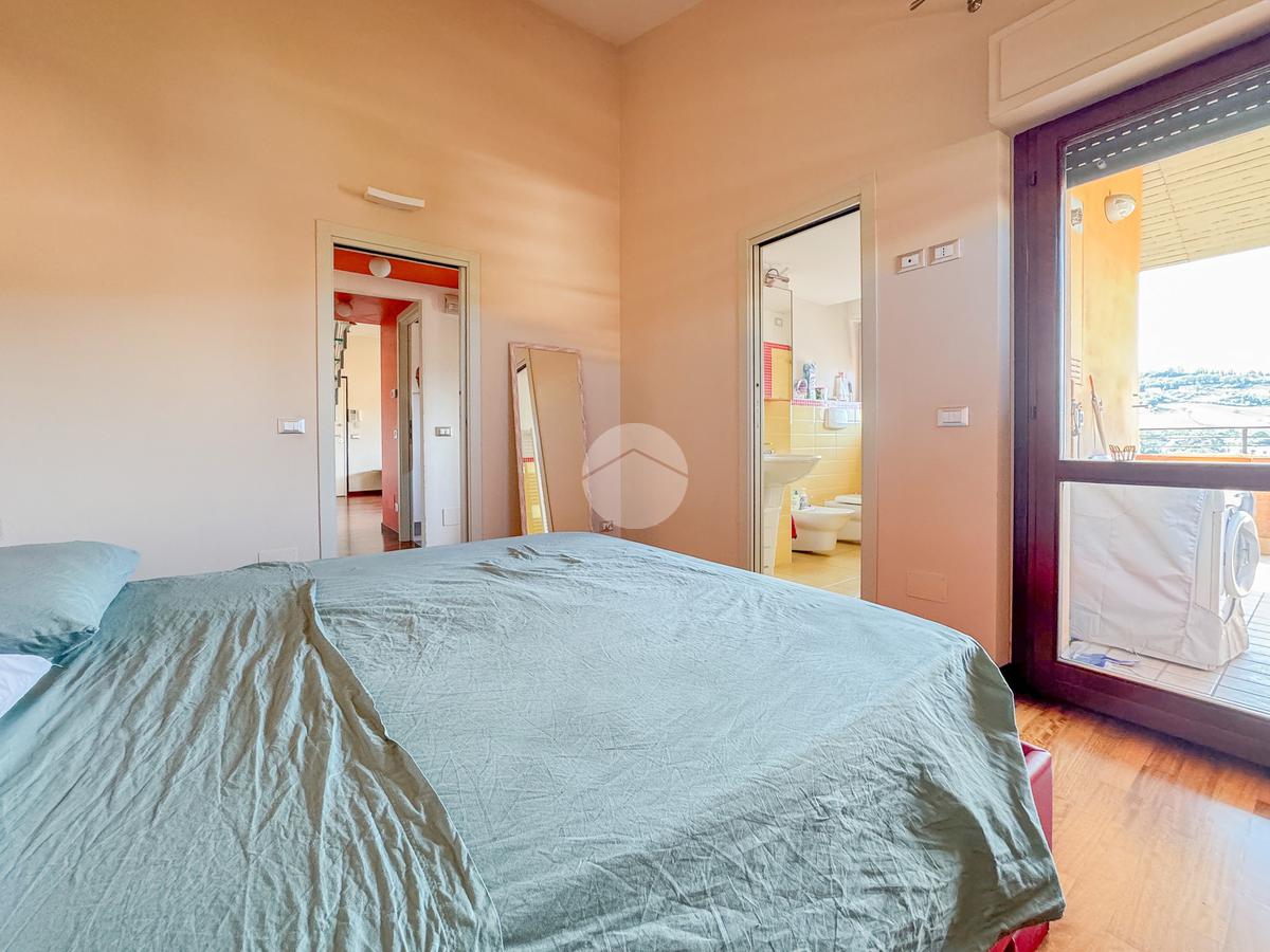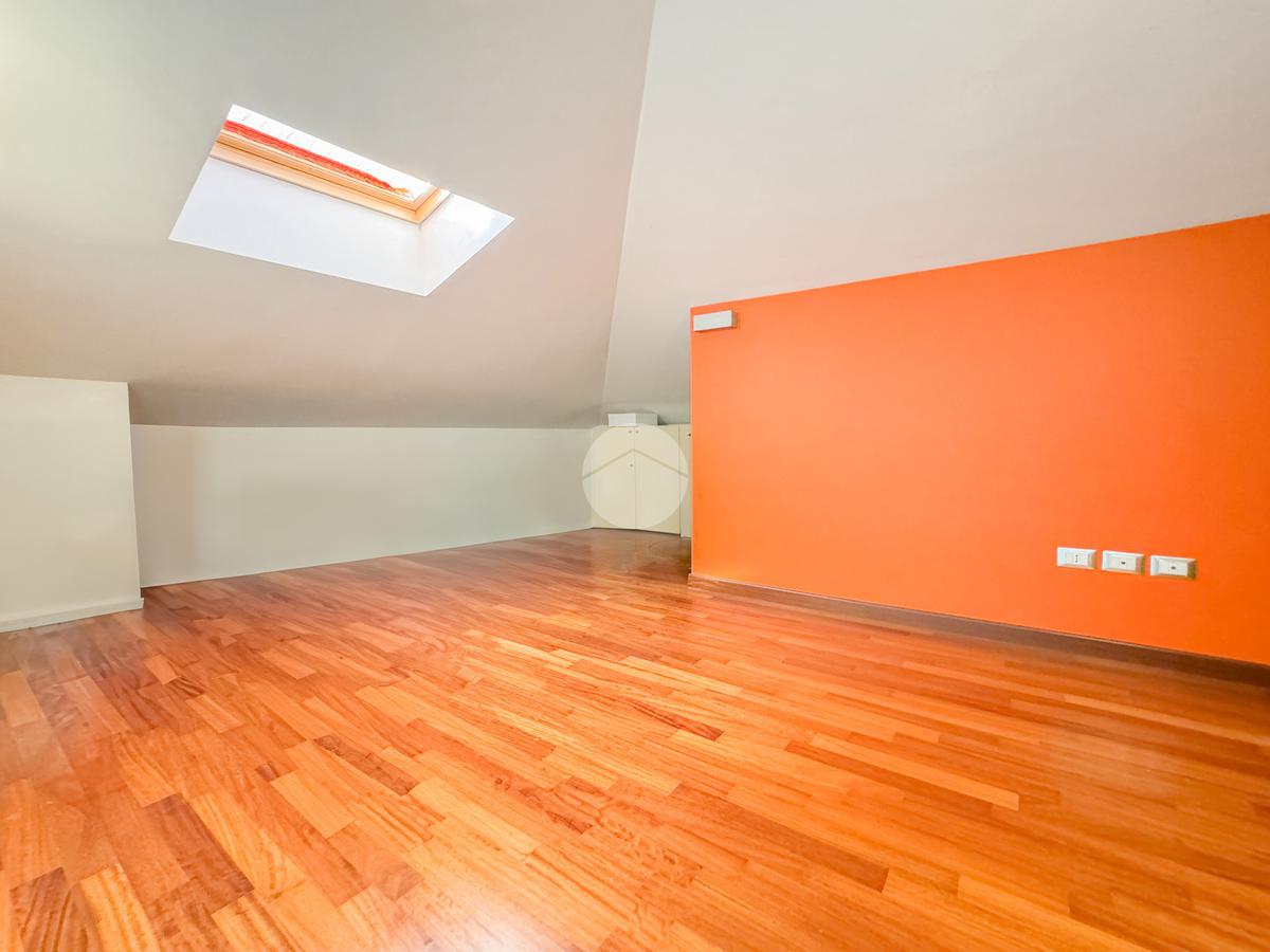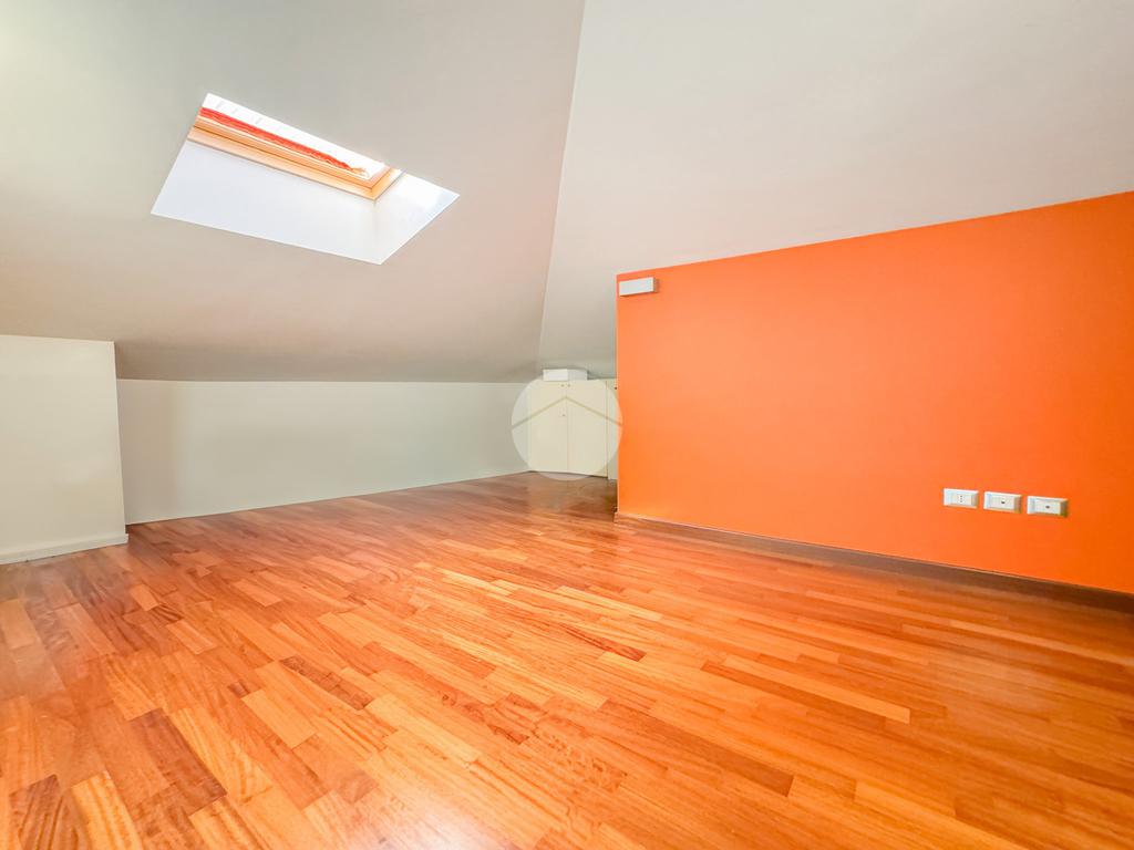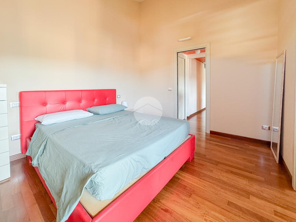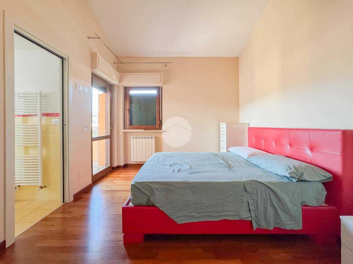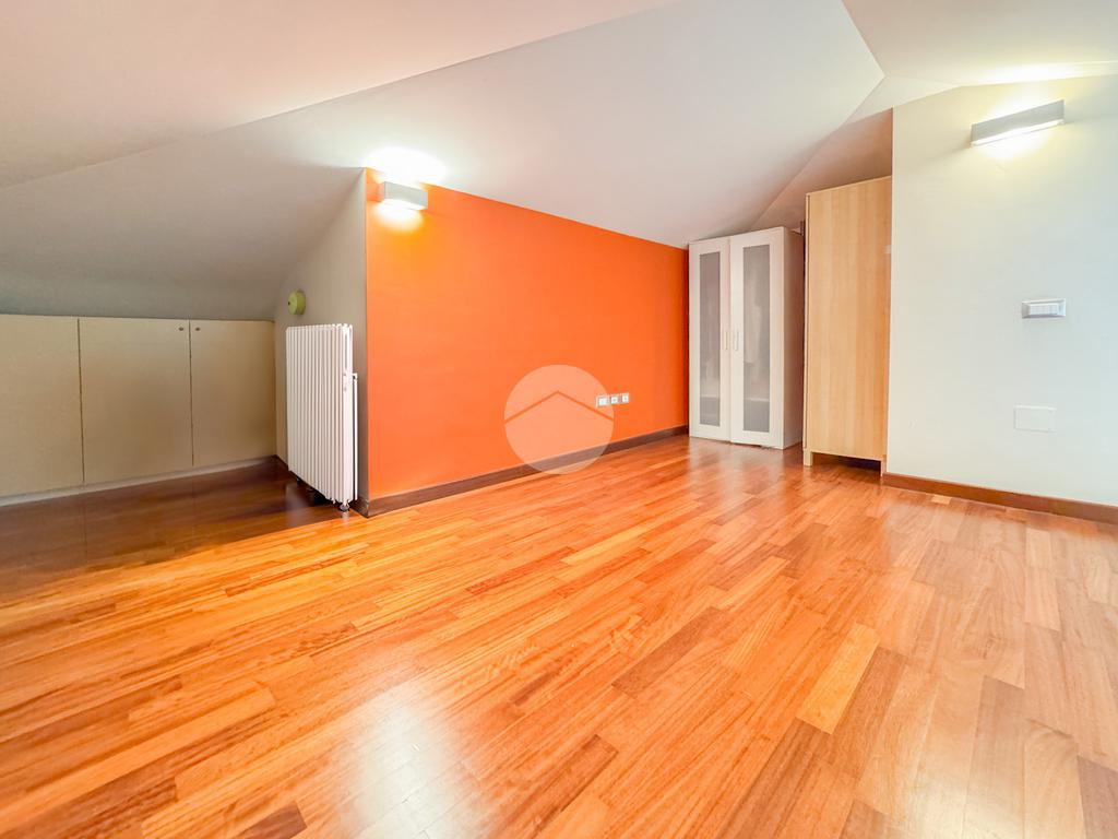 Un disimpegno ci conduce poi nel reparto notte, dove troviamo dapprima il bagno principale, completo di doccia e finestra, e poi l'ampia camera matrimoniale, con bagno al suo interno completo anch'esso di doccia e finestra, ed una pratica cabina armadio.