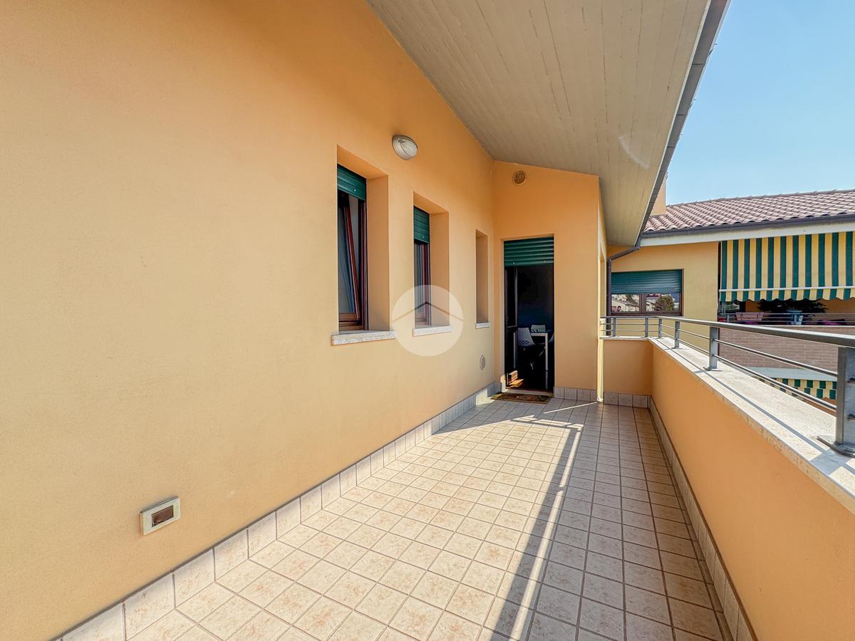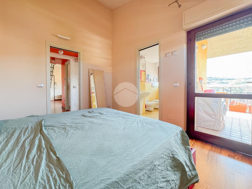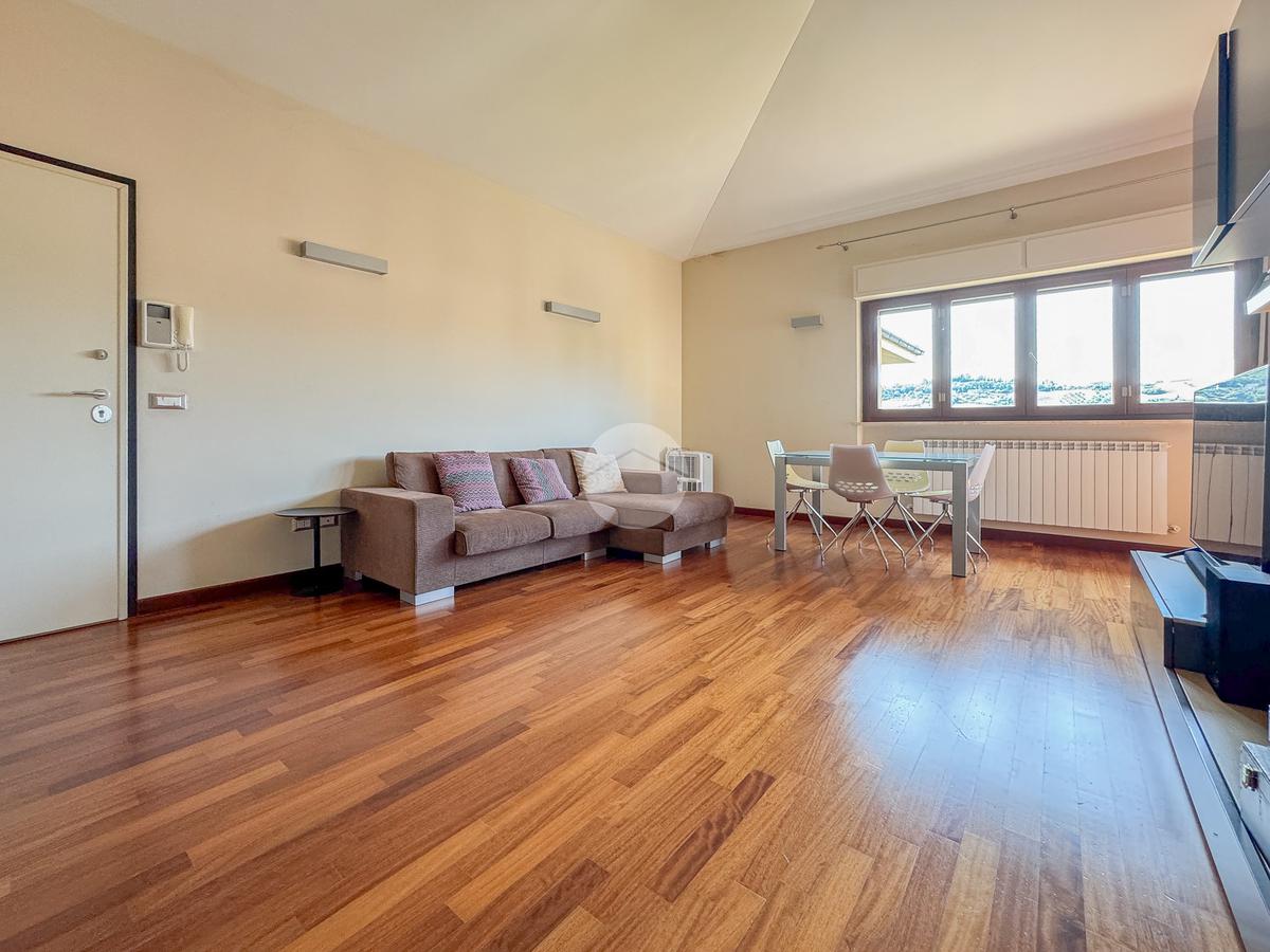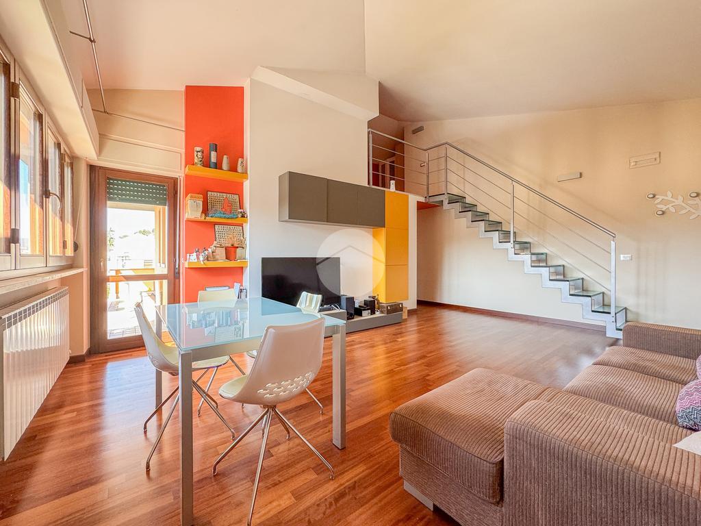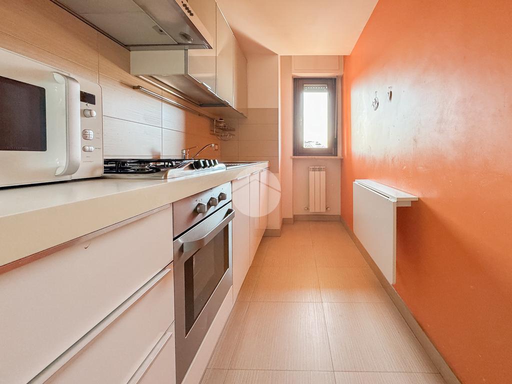 L'immobile è composto da un ingresso che serve direttamente l'ampio e luminoso soggiorno, che affaccia su un terrazzo esclusivo panoramico, dal quale è possibile ammirare sia la città che il Gran Sasso. La cucina è invece abitabile e separata dalla zona living.