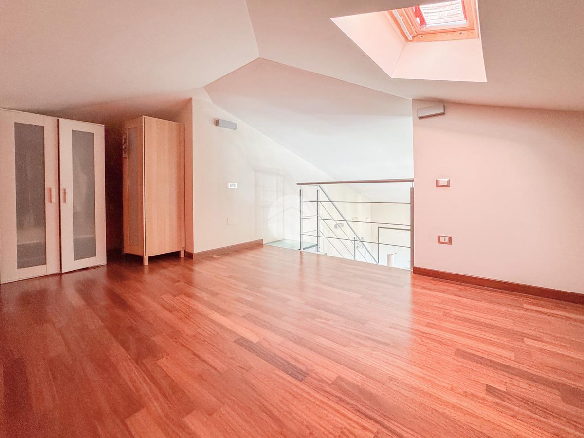 Attraverso una elegante scala in vetro e acciaio possiamo raggiungere un comodo soppalco di 20 mq, da poter adibire secondo le proprie esigenze o necessita.