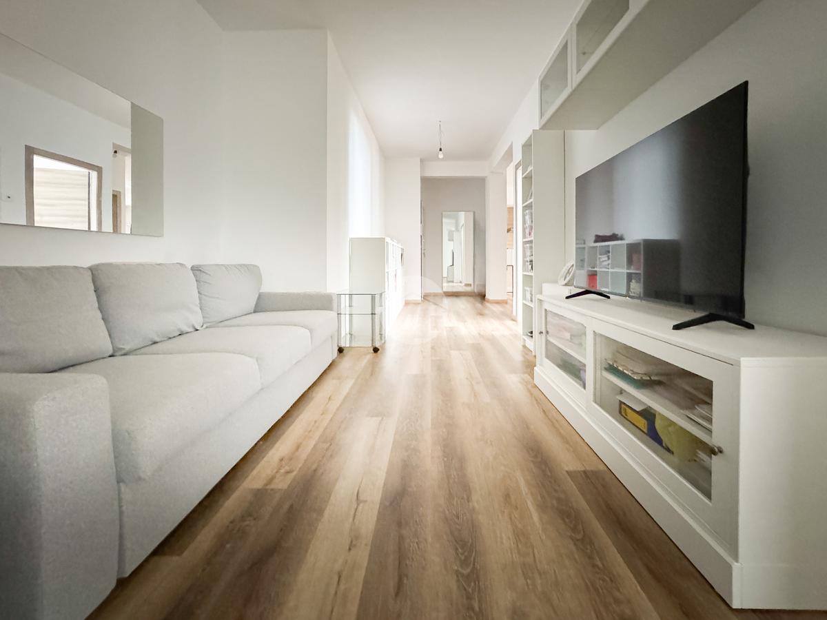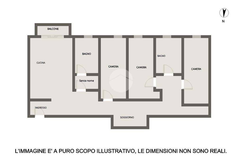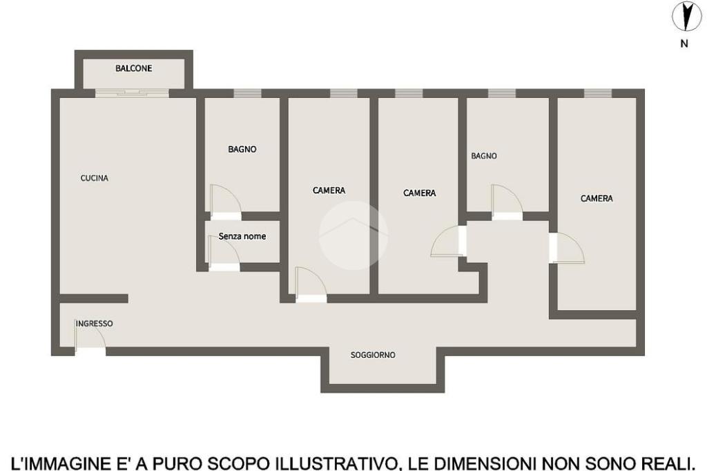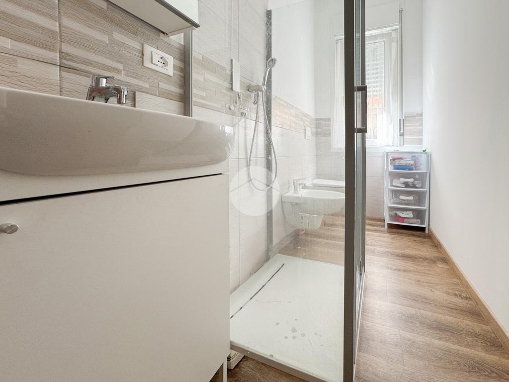 L'immobile si compone come segue: l’ingresso ci fa strada sia sull’ampia cucina abitabil, con uscita sul balcone, sia sulla zona living; nella zona giorno possiamo trovare un primo bagno di servizio, con antibagno e finestra. Nella zona notte troviamo invece tre camere da letto, di cui due matrimoniali ed una singola attualmente adibita a cabina armadio, ed un secondo bagno completo di box doccia e finestra.