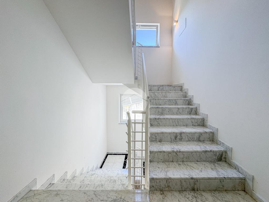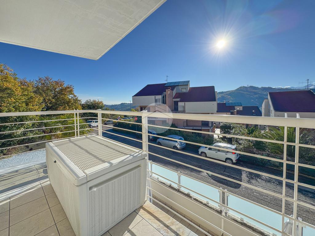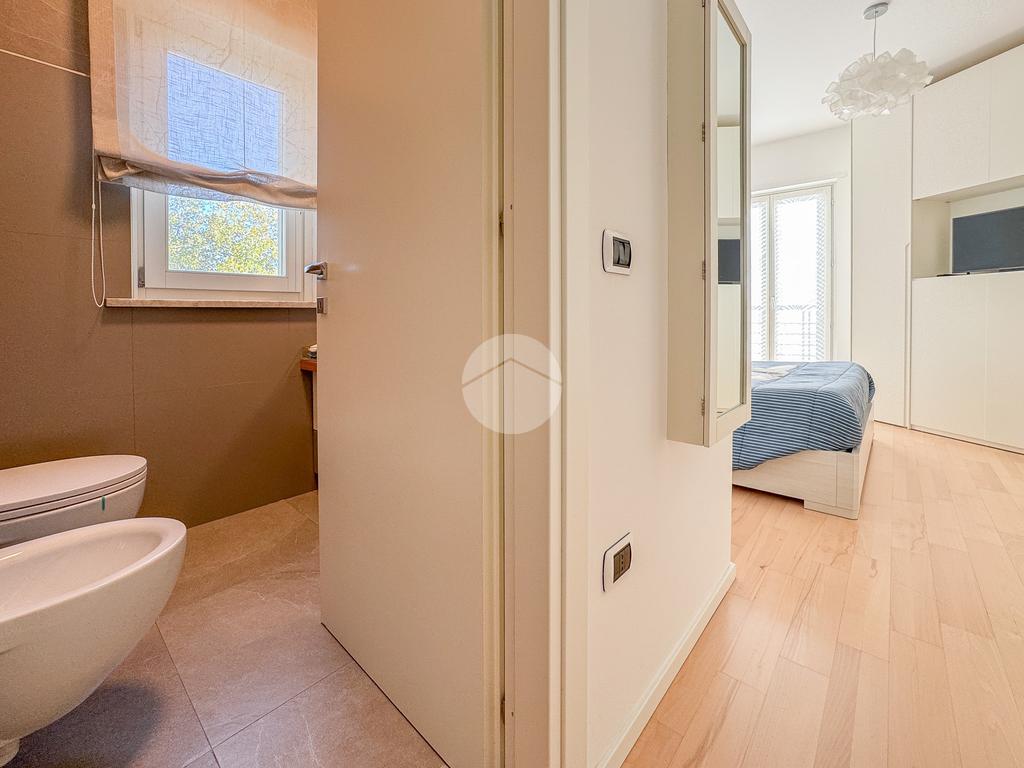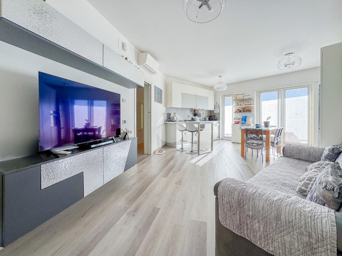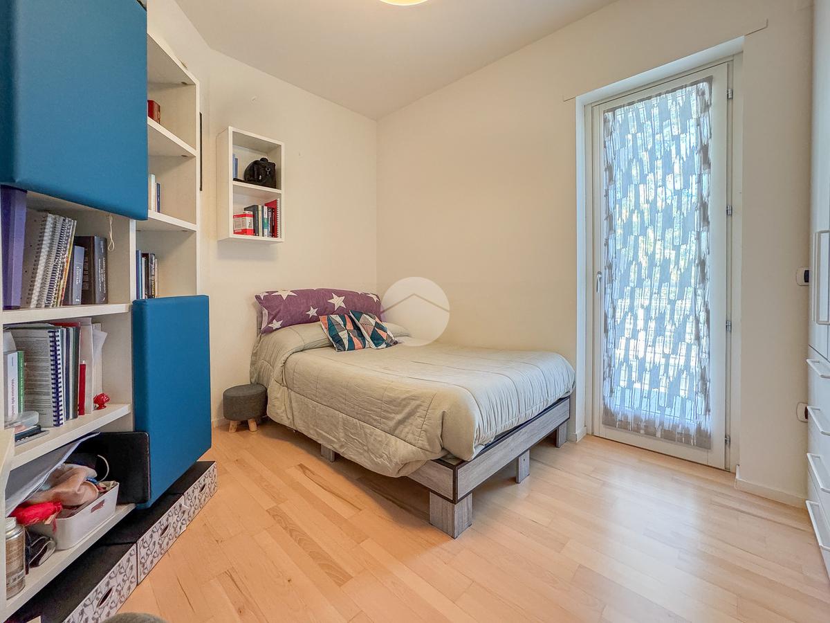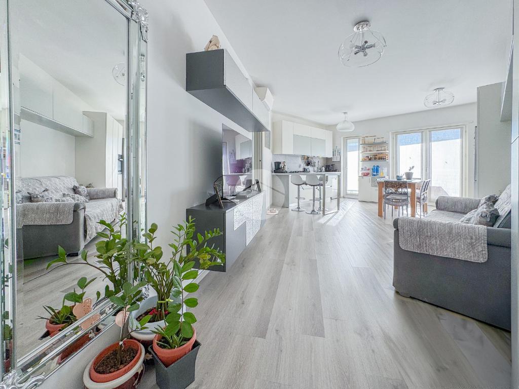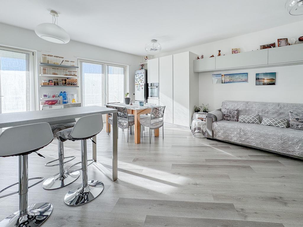 L'appartamento si presenta con un ampio e luminoso ambiente open-space, nel quale abbiamo sia la zona living che l'angolo cottura a vista, con l'affaccio sul primo terrazzo coperto; un disimpegno separa la zona notte, composta da una camera matrimoniale con bagno en-suite, una cameretta con balcone privato, ed infine il bagno principale completo di box doccia e finestra.
