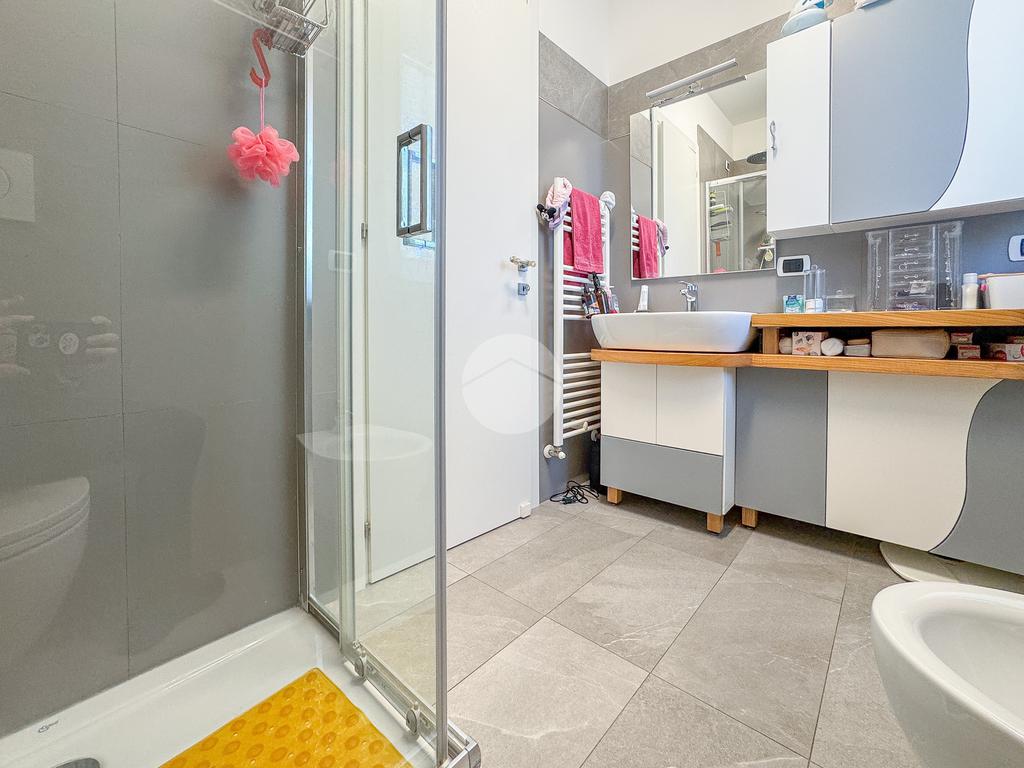L'appartamento si presenta con ottime rifiniture, dalla pavimentazione agli infissi doppio vetro in PVC, impiantistica nuova, impianto di climatizzazione, cappotto termico e portone blindato.