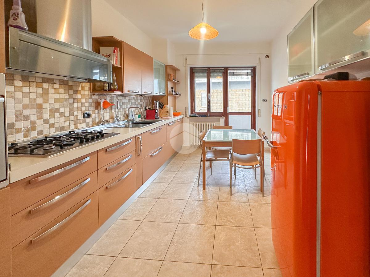 Appena entrati, la zona giorno si presenta con un ampio soggiorno luminoso, dotato di accesso diretto a un balcone, e una cucina abitabile che dispone di un secondo balcone; un corridoio conduce alla zona notte, composta da tre camere da letto, di cui una con bagno en suite e un ulteriore bagno finestrato.