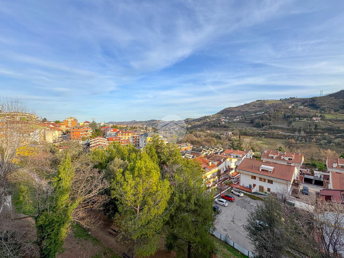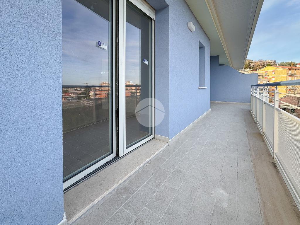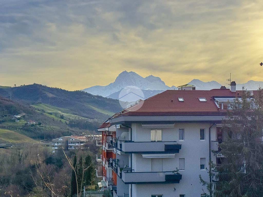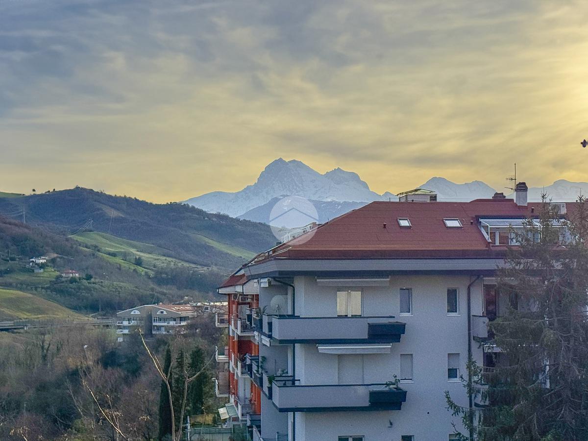 La disposizione vede un comodo ingresso che ci accoglie, che separa la cucina abitabile di 20 mq con dispensa annessa, dal soggiorno di oltre 40 mq, entrambi con l'affaccio su un ampio terrazzo, esposto a Sud, che gode di un meraviglioso panorama sia sulla città che sul Gran Sasso.