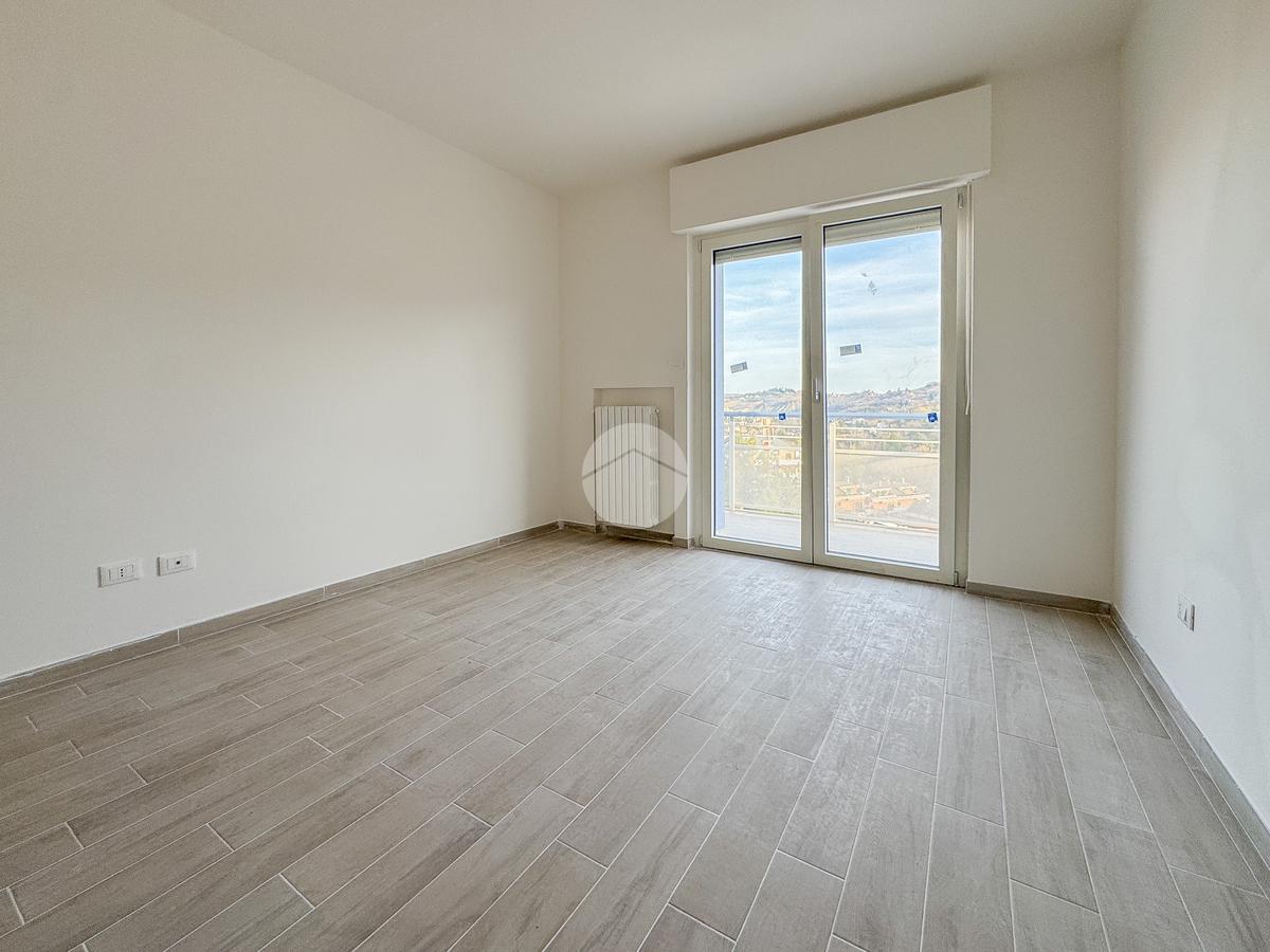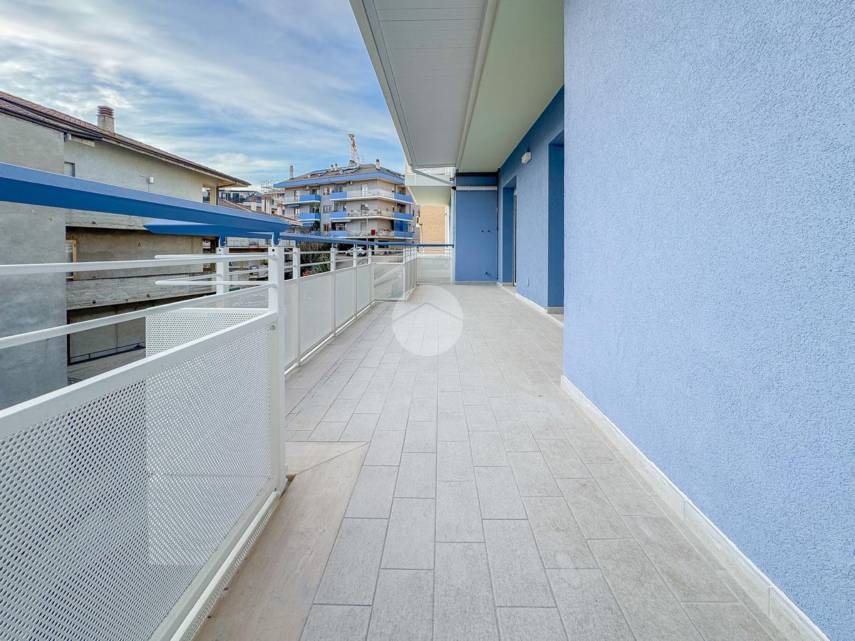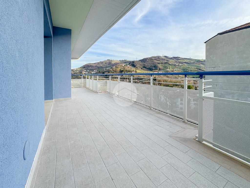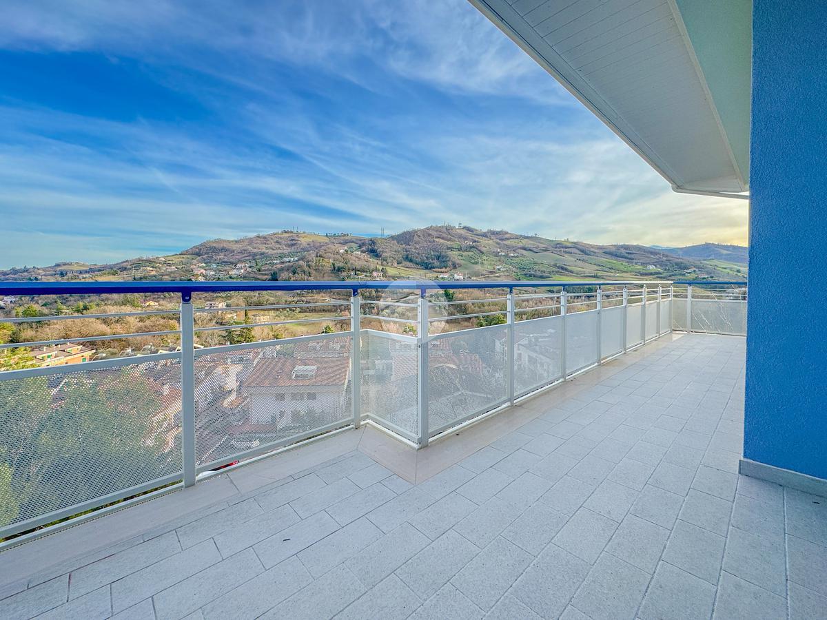 La disposizione vede un comodo ingresso che ci accoglie, che separa la cucina abitabile di 20 mq con dispensa annessa, dal soggiorno di oltre 40 mq, entrambi con l'affaccio su un ampio terrazzo, esposto a Sud, che gode di un meraviglioso panorama sia sulla città che sul Gran Sasso.