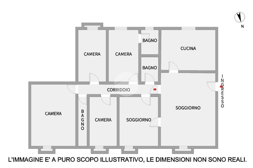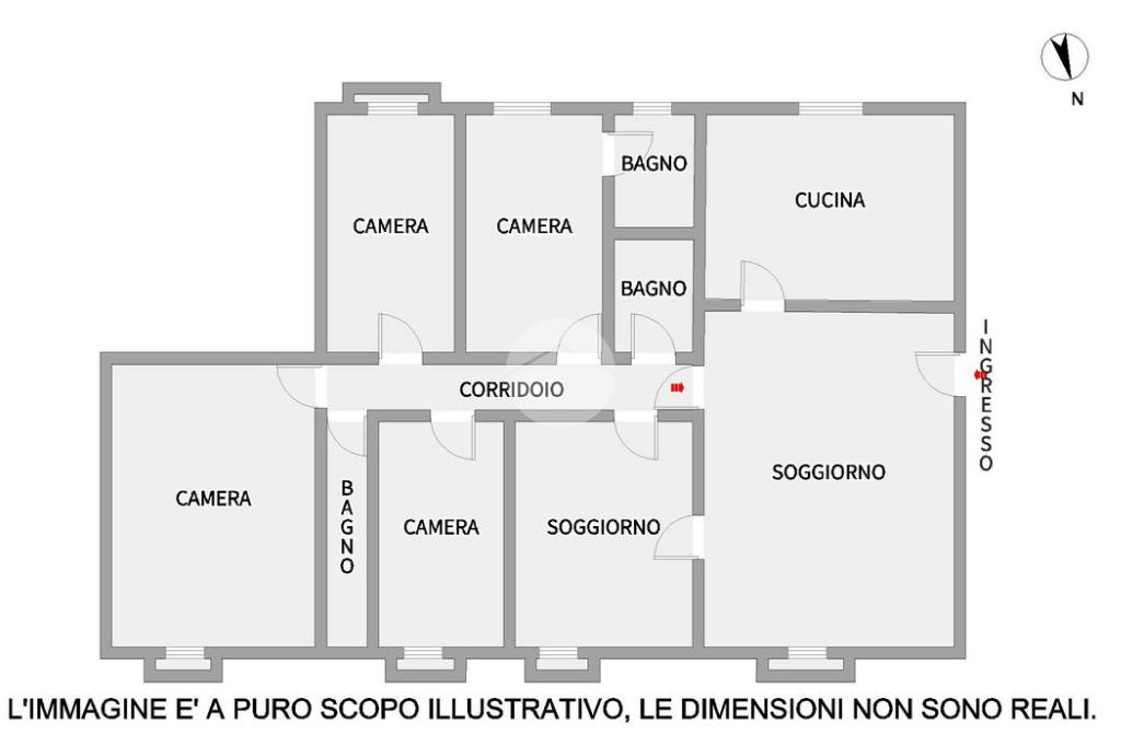 L'appartamento è così composto: l'ingresso ci conduce nella zona giorno dove troviamo una cucina abitabile e un doppio soggiorno. Un comodo disimpegno accompagna alla zona notte, dove troviamo quattro camere da letto matrimoniali, di cui una dotata di bagno interno finestrato, oltre ad altri due servizi, tutti completamente ristrutturati e provvisti di doccia.