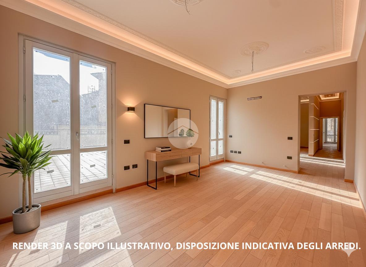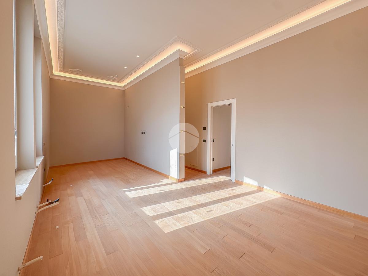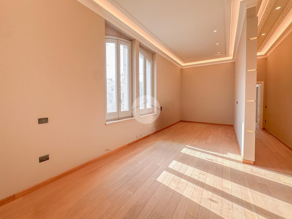 Già varcando la soglia si percepisce l’unicità dell’immobile: gli ambienti ampi e luminosi si sviluppano attorno a un magnifico doppio salone di rappresentanza, uno spazio pensato per stupire, accogliere e vivere momenti esclusivi. Il parquet, che avvolge quasi tutta la superficie della casa, dona continuità e calore, mentre l’illuminazione LED valorizza i soffitti decorati con rosoni e dettagli storici finemente restaurati, creando un’atmosfera sofisticata in cui il classico dialoga armoniosamente con il moderno.