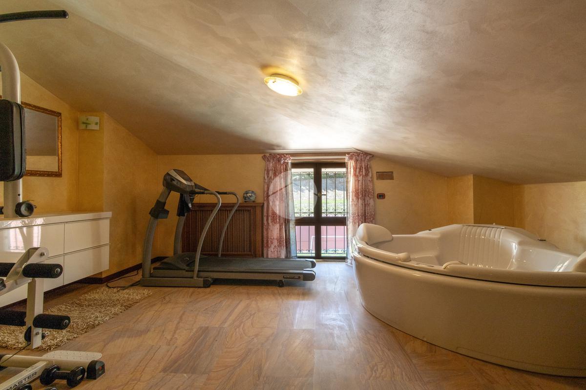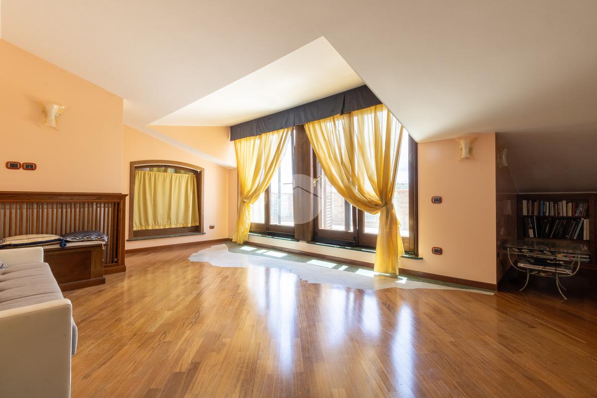 All’ultimo piano della villa, un elegante ingresso separa la zona giorno da quella notte. L’ampio soggiorno, impreziosito da un angolo camino e da un raffinato murale raffigurante il Gran Sasso, si apre su una terrazza che regala una vista panoramica mozzafiato sulla montagna. Il piano comprende inoltre uno studio, un bagno con doccia e un’esclusiva area spa con palestra, perfetta per concedersi momenti di relax e benessere. Tutti gli ambienti sono valorizzati da un pregiato pavimento in parquet.